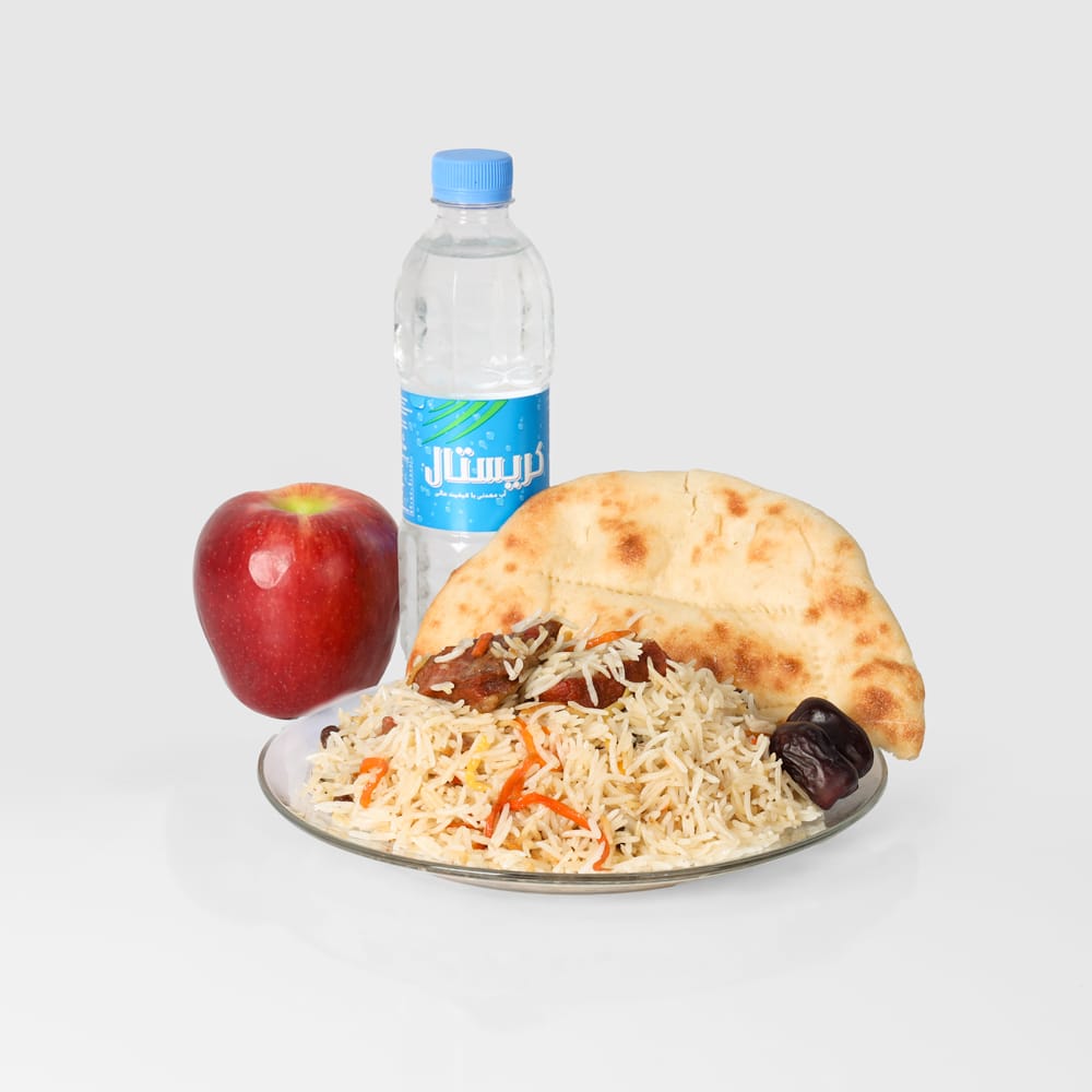The Ramadan Iftari Package is thoughtfully prepared to provide a nutritious and comforting meal for fasting individuals during the holy month of Ramadan. Each package includes half bread, a fresh apple, bottled water, traditional Qabali rice with meat, and dates—ensuring a balanced and fulfilling iftar. This package is designed to support vulnerable families and individuals, bringing dignity, nourishment, and hope at the time of breaking fast.